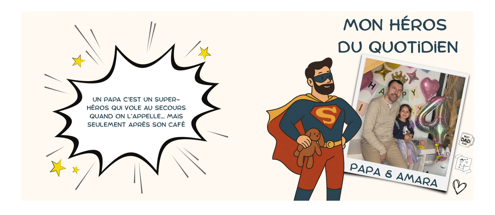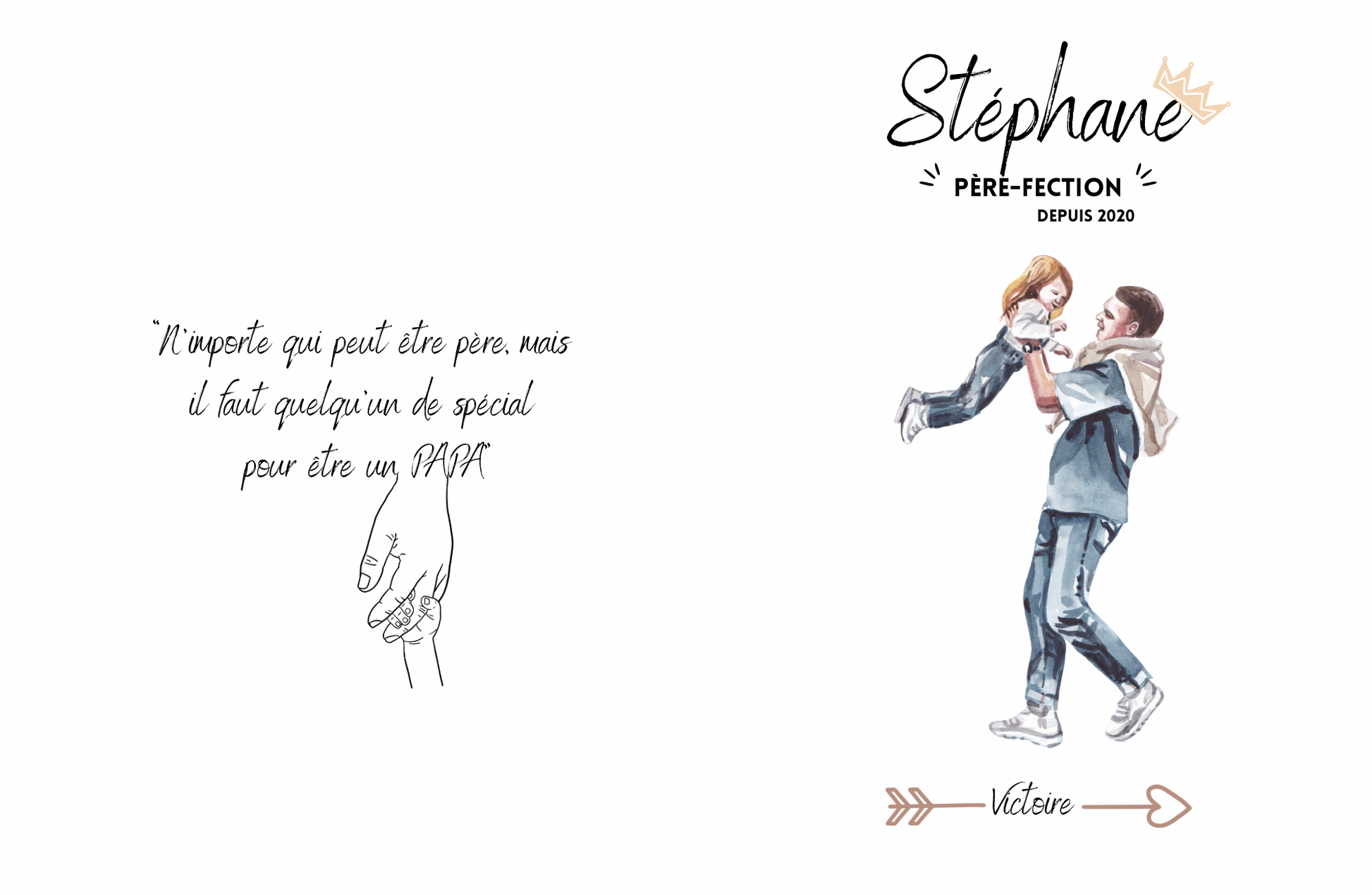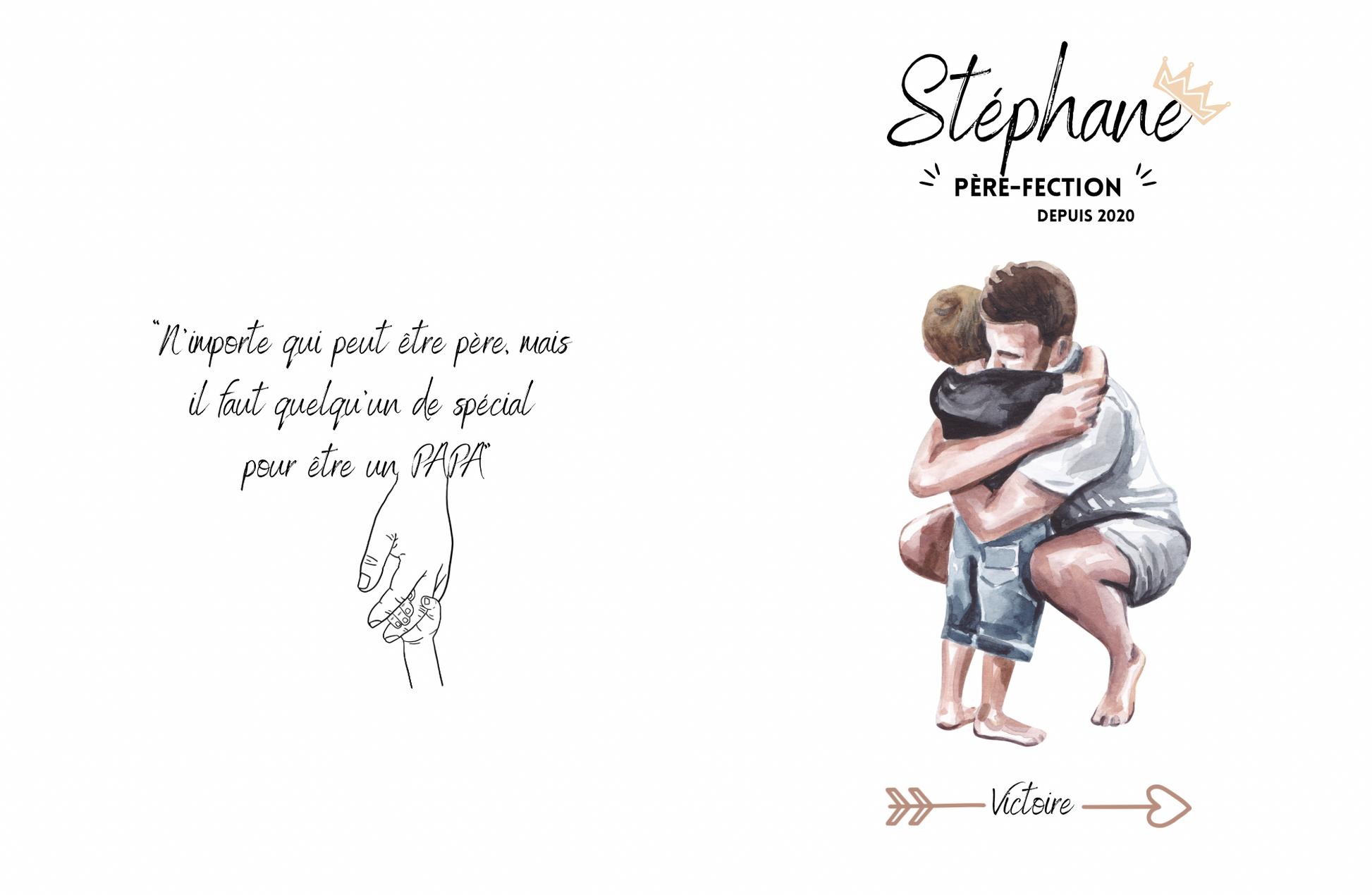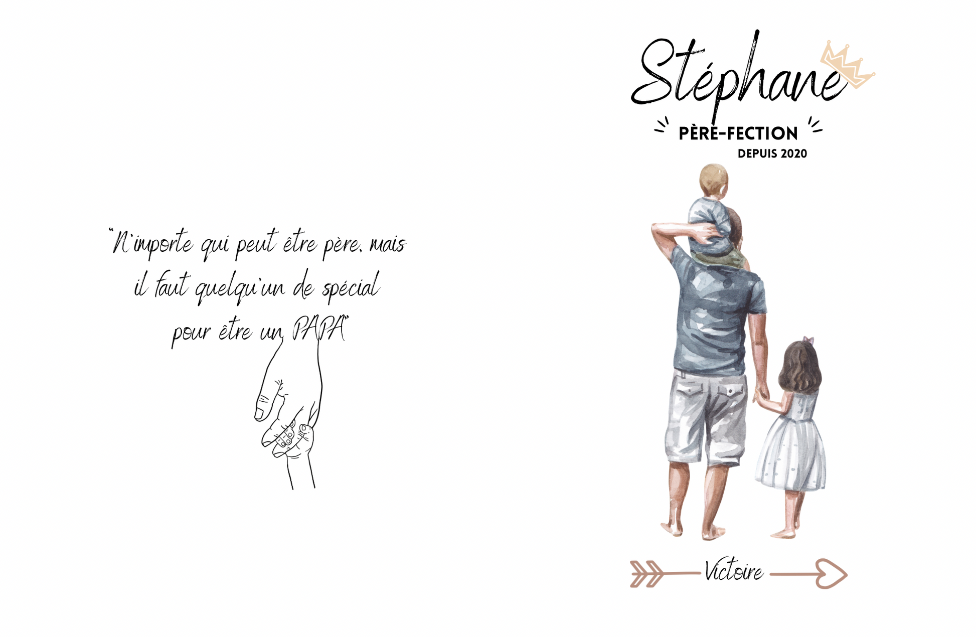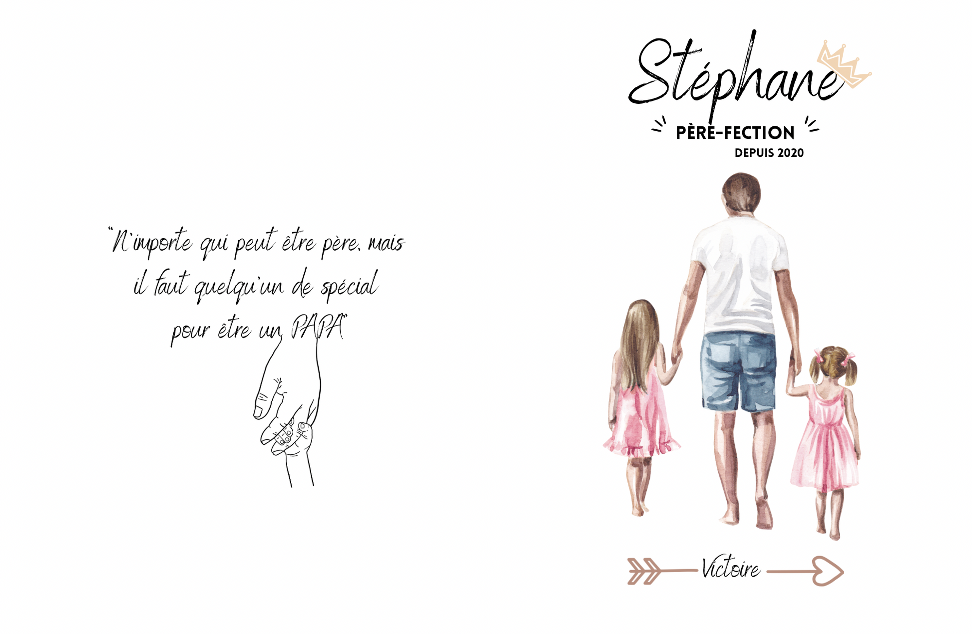 - Design « Père-fection » : prénom du papa, l'année où il est devenu papa pour la première fois et le ou les prénoms de ses enfants